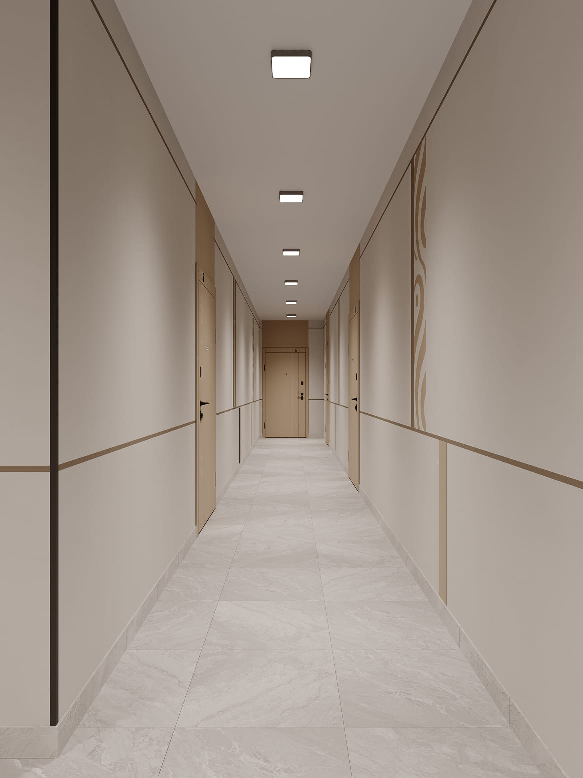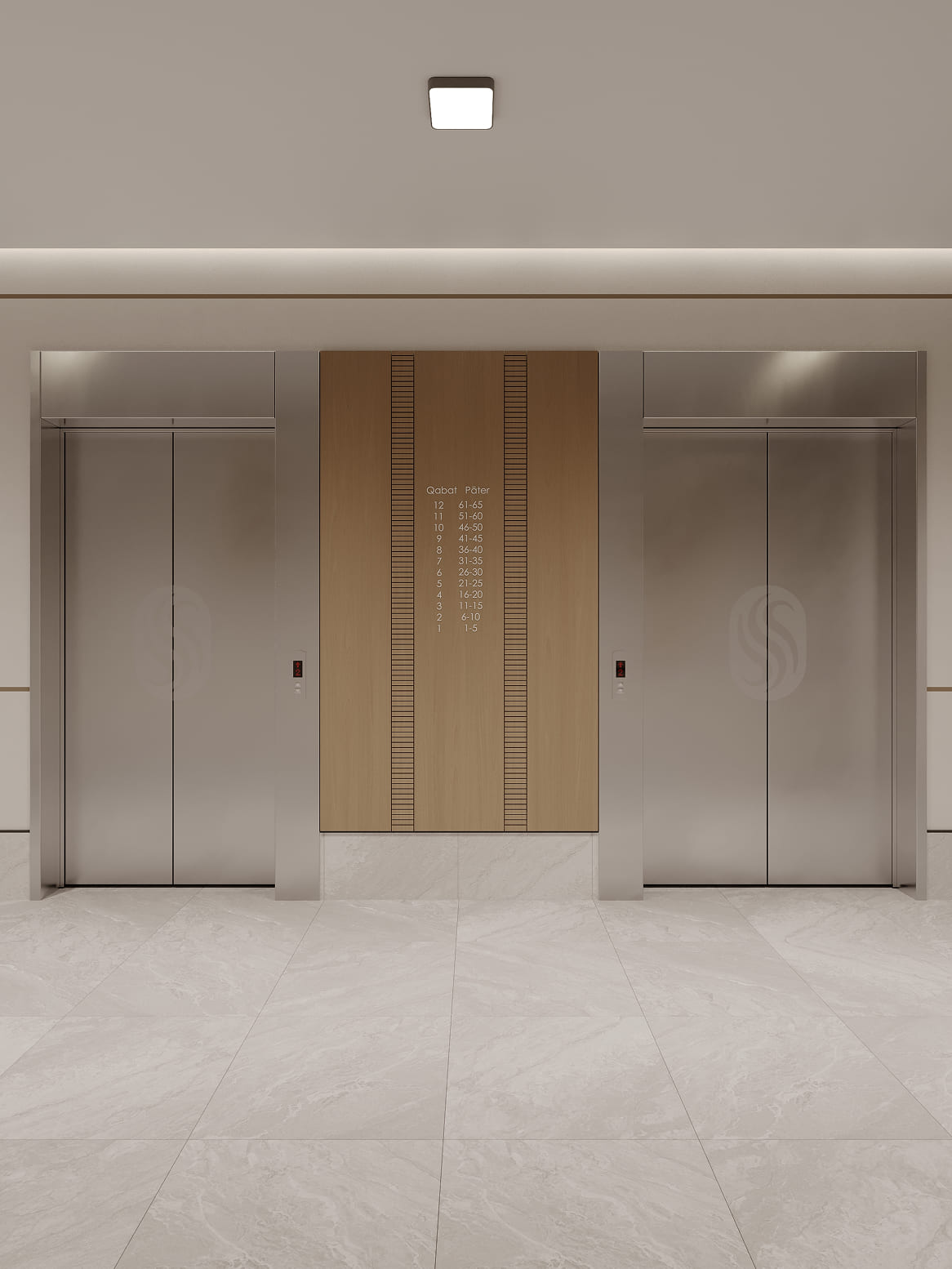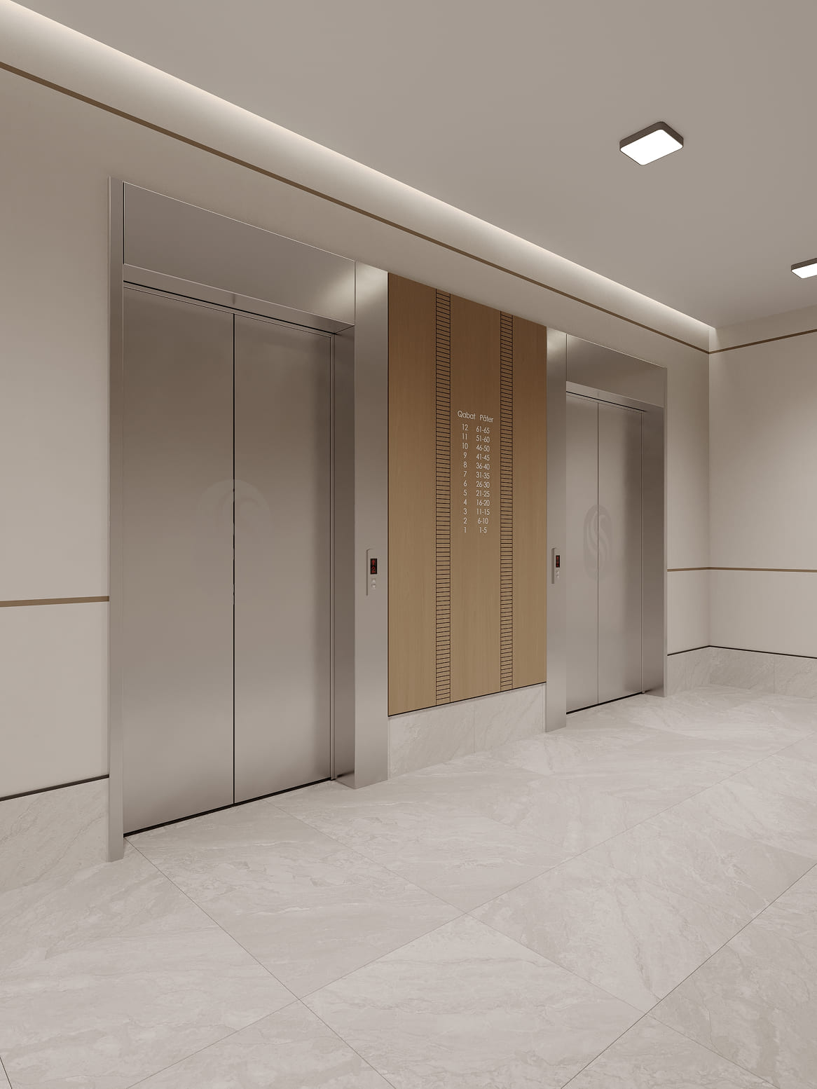 Дизайнерские холлы ЖК SHALQAR встречают жителей атмосферой спокойствия и благородного минимализма. Интерьер выполнен в теплой природной гамме: мягкие песочные и бежевые оттенки стен визуально расширяют пространство, наполняя его воздухом и светом.