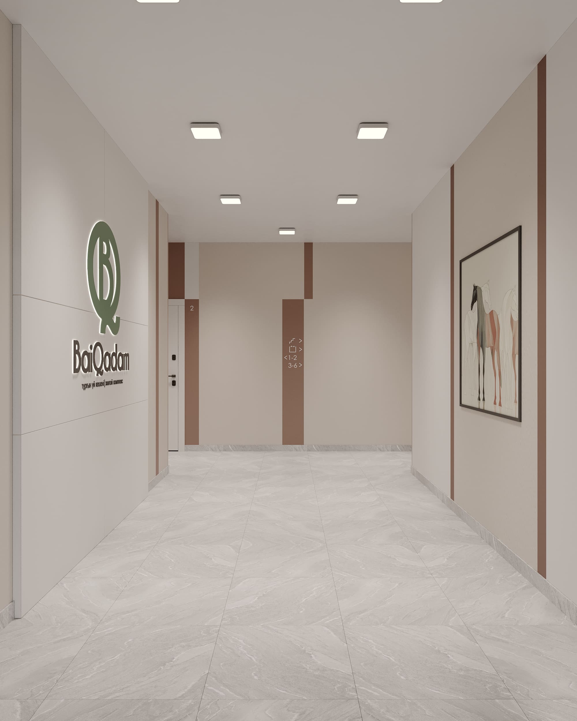 Жилой комплекс «Baiqadam» — это современный проект класса «Комфорт», состоящий из 6 секций переменной этажности от 9 до 12 этажей. Формат застройки предусматривает закрытый и безопасный двор, расположенный на уровне 2-го этажа. Высота потолков в квартирах — 3 метра.